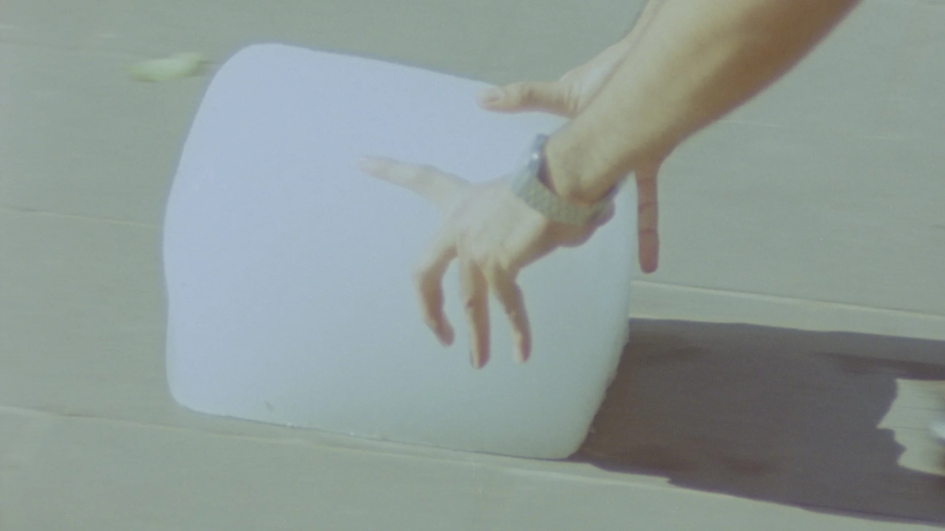The bodies in the work relate to their surroundings through simple actions that do not aim at productivity, but at measuring presence: rhythm, play, endurance. The motifs revolve around transience — the leaf, the block of ice — and the images become compartments of memory, like drawers holding traces of what has been and what is in the process of disappearing.